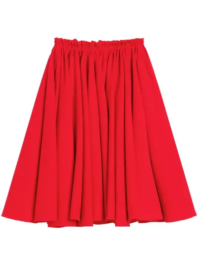 poppy red wool canvas godet details high-waisted concealed rear zip fastening knee length straight hem