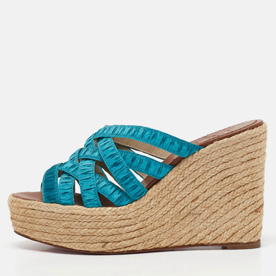 Christian Louboutin Blue Fabric Crepon Wedge Sandals Size 36 1118707 (голубой, lpn29409322)