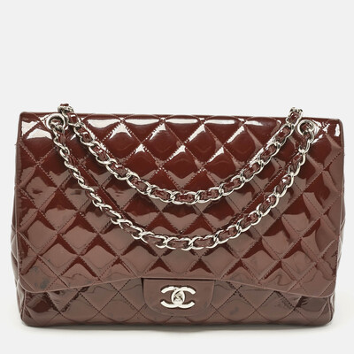 Chanels luxurious Classic Flap bag is a must have in a well curated wardrobe This stunning bag has a masterfully crafted patent leather exterior with silver tone hardware and the iconic CC logo on the front. This burgundy Maxi Classic Single Flap is complete with a sturdy leather chain shoulder strap.