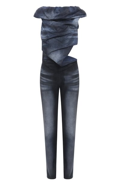 Комбинезон De-Clodia-Fsg с потайной молнией сбоку, эластичными проймами и открытой спиной сшили из ткани на основе хлопка с добавлением лиоцелла и модала. Модель с зауженными брючинами и драпированным лифом выбелили лазером, а затем покрыли лаком и отгладили вручную для блеска.