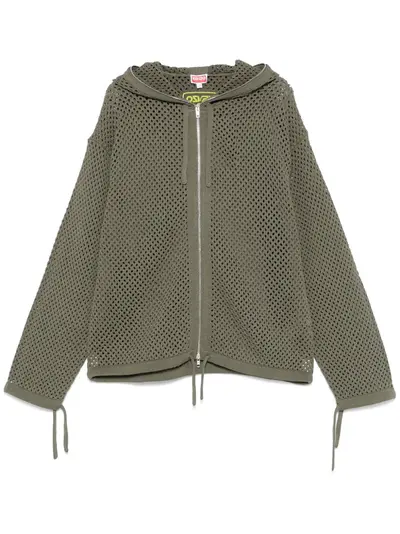 olive green front two-way zip fastening drawstring cuffs drawstring hem logo patch at the sleeve