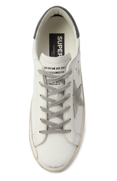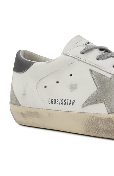На кедах Super Star из гладкой матовой кожи сформировали нарочитые потертости. Пару с контрастным задником и фирменной звездой сбоку поставили на состаренную резиновую подошву. Внутри – комбинация кожи и махрового текстиля.