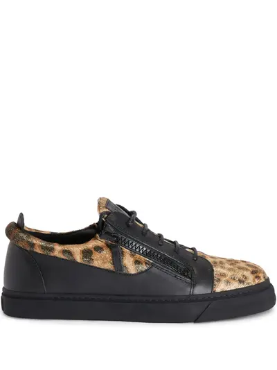 gold tone leopard print leather lace-up fastening side zip detail contrasting black panels rubber sole