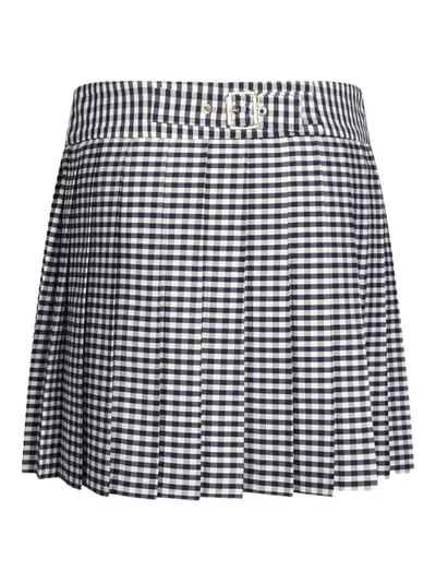 blue plaid check pattern pleated skirt