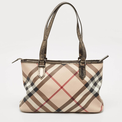 Burberry Metallic/Beige Supernova Check PVC and Patent Leather Nickie Tote 1120075 - 1 small