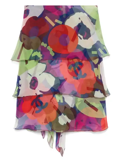 circa 2000s navy blue silk all-over floral print concealed rear hook and zip fastening ruffled detailing rear tie fastening full lining Condition: GOOD. This previously owned and used item is in good condition with minimal signs of use. This may include fading of material or plating and scratches.