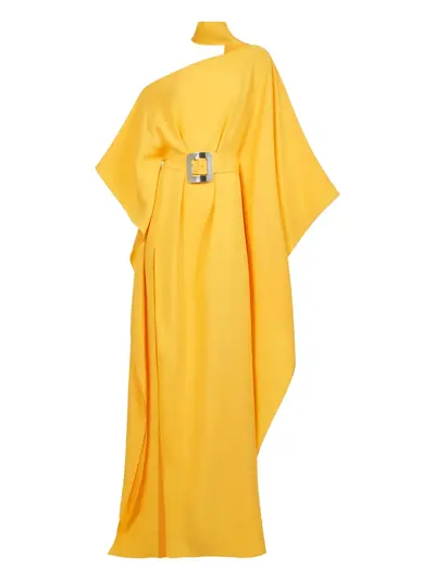 yellow buckle fastening asymmetric neck long sleeves side slit