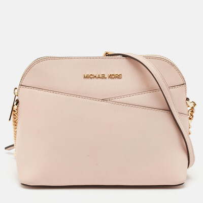 With its soft light pink leather, the Jet Set Travel Dome bag by Michael Kors offers an effortlessly chic aesthetic. This crossbody bag combines functionality with style, featuring a spacious interior and a sleek dome shape. Its subtle color and a brand logo on the front make it a perfect companion for both travel and everyday outings.