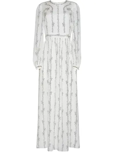white concealed rear zip fastening all-over floral print crew neck long sleeves