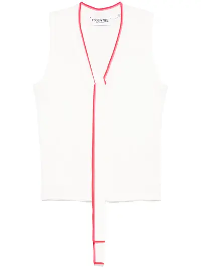 white front button fastening front bow fastening two front patch pockets sleeveless