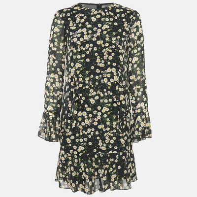 Moschino Cheap & Chic Black Floral Print Silk Ruffled Mini Dress S 1124167 Moschino Cheap & Chic (чёрный, lpn29473963)