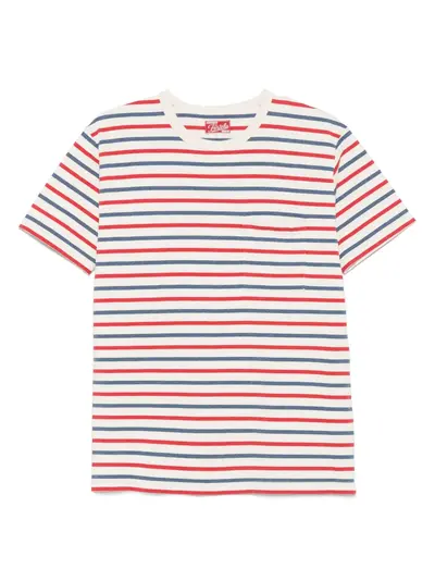 light beige chest patch pocket horizontal stripe pattern crew neck
