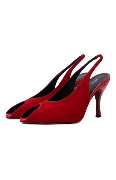 Туфли Hamal с овальным вырезом на зауженном мысе выполнили из цельного отреза замши, а для внутренней и внешней отделки модели использовали кожу. Перемычку на открытом заднике дополнили эластичной вставкой.