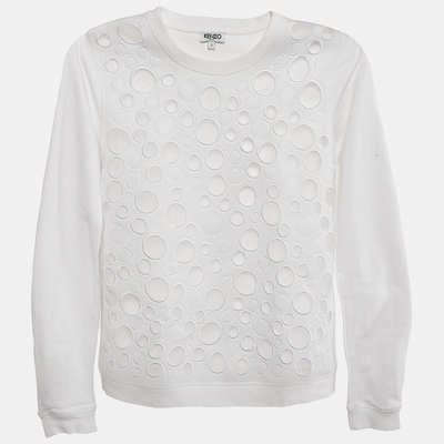 Kenzo White Mesh and Cotton Cut-Out Detail Sweatshirt S 1124183 - 1