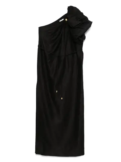 black concealed side hook and zip fastening one-shoulder single short sleeve side slit