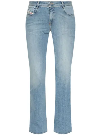 blue concealed fly and button fastening classic five pockets belt loops appliqué logo
