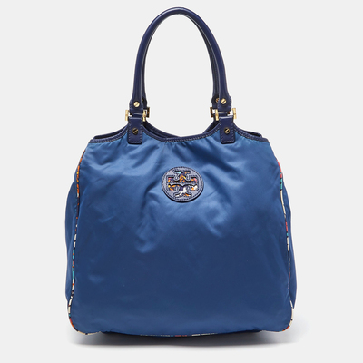Tory Burch Blue/Multicolor Nylon Logo Tote 1120313 - 1 small