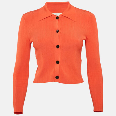 Sandro Red Rib Knit Button Front Crop Top S 1124595 (красный, lpn29487968)