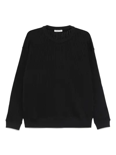 black ribbed cuffs and hem crew neck long sleeves perforated design
