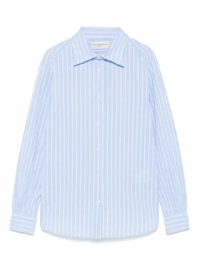 cornflower blue front button fastening buttoned-cuff sleeves vertical stripe print curved hem
