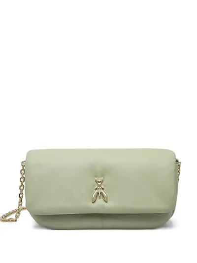 sage green foldover top with magnetic fastening leather and chain-link shoulder strap internal zip-fastening pocket logo-jacquard lining