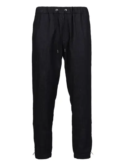 navy blue elasticated drawstring waistband two side slit pockets rear zip-fastening pocket ankle zips