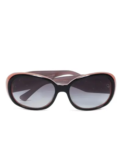 circa 2000s black/powder pink oversize frame UV-protective lenses floral motif oversize curved arms These glasses come with a protective case. Condition: GOOD. This previously owned and used item is in good condition with minimal signs of use. This may include fading of material or plating and scratches.