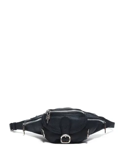 circa 2000-2020 black leather grained texture top zip fastening foldover top front buckle fastening two side zip-fastening pockets adjustable waist strap main compartment Condition: GOOD. This previously owned and used item is in good condition with minimal signs of use. This may include fading of material or plating and scratches.