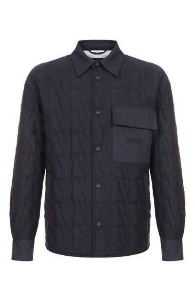 Куртку-рубашку из хлопка со стеганым орнаментом дополнили гладким нагрудным карманом с вышитым логотипом. У изделия предусмотрели еще два кармана по бокам и один внутри. Модель с закругленной линией низа застегивается брендированными кнопками.