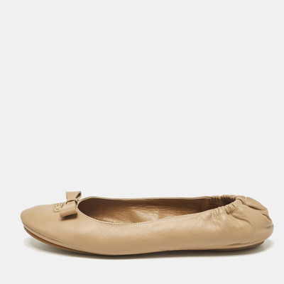 These Lets Dance ballet flats from Fendi are very chic and stylish The beige pair is crafted from leather and features round toes, bow, and brand name detailed on the vamps and comfortable insoles. The scrunch counters ensure a snug fit.
