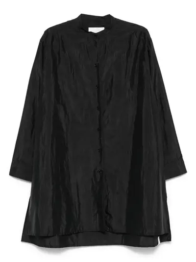black front button fastening buttoned-cuff sleeves side slits band collar