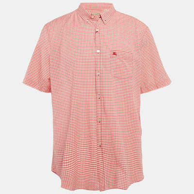 Burberry Brit Red Gingham Cotton Short Sleeve Button Down Shirt 3XL 1128839 (красный, lpn29551345)