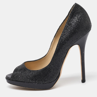 Jimmy Choo Black Glitter Fabric Luna Peep Toe Platform Pumps Size 37 1130717 (чёрный, lpn29551628)