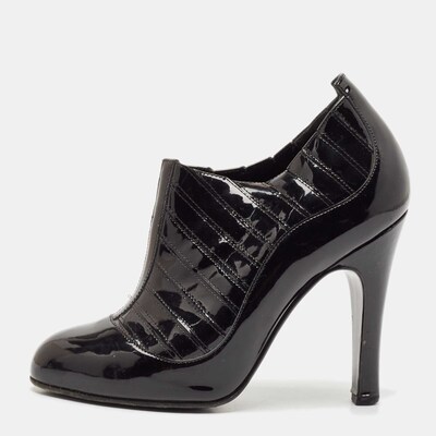 Chanel Black Patent Leather New York Ribbed Ankle Booties Size 37 1133475 (чёрный, lpn29578217)