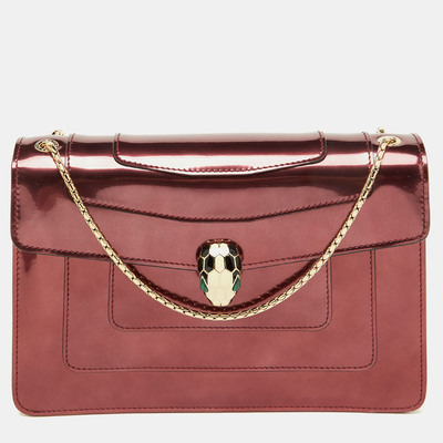 Bvlgari Burgundy Patent Leather Medium Serpenti Forever Flap Shoulder Bag 1132876 (lpn29580994)