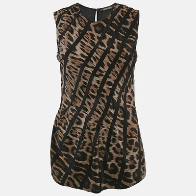 Roberto Cavalli Brown Leopard Print Silk Sleeveless Top S 1133854 (коричневый, lpn29581517)