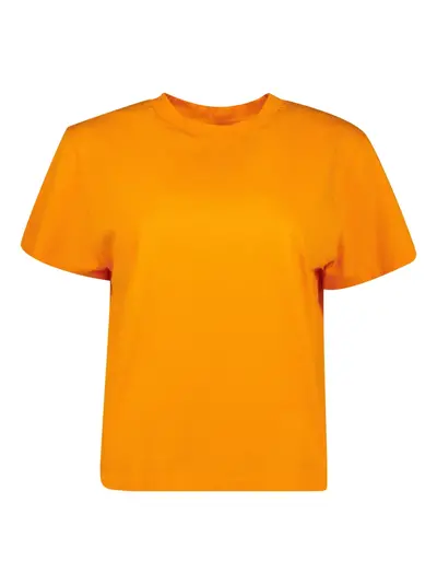 bright orange round neckline short sleeves split back detail relaxed fit straight hem
