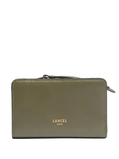 green all-around zip fastening press-stud fastening internal card slots coin pocket