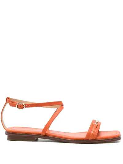 carrot orange buckle-fastening ankle strap leather and rubber sole branded leather insole gold-tone logo plaque