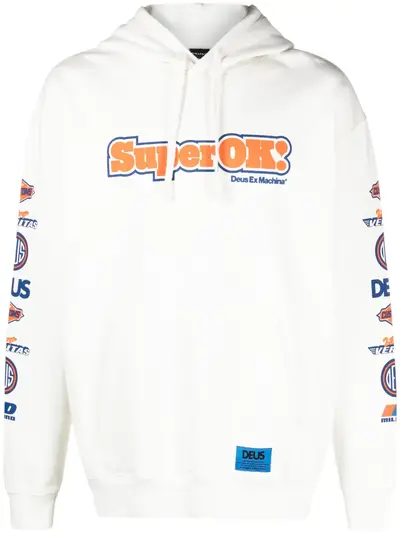 white/multicolour recycled cotton logo print to the front graphic-print sleeves long sleeves drawstring hood front pouch pocket straight hem