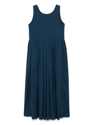 navy blue concealed rear fastening two side inset pockets sleeveless pleated skirt