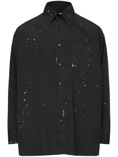 black front button fastening buttoned-cuff sleeves chest patch pocket signature single-stitch logo