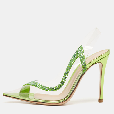 Gianvito Rossi Transparent/Green PVC and Suede Embellished Hortensia Pumps Size 37 1133704 (lpn29637033)