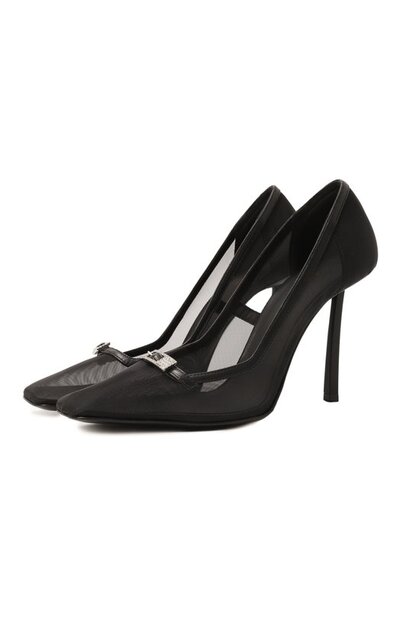 Туфли Vittoria на высокой шпильке выполнили из сетки, отделав модель внутри и снаружи кожей в тон. Союзку изделия украсили узким ремешком с пряжкой, подчеркнутой стразами.