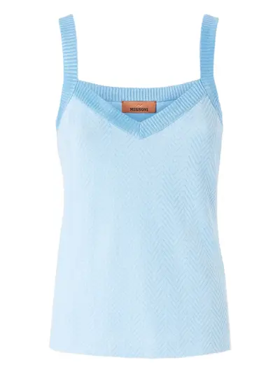 light blue V-neck sleeveless ribbed trim The item you receive may differ slightly from the item photographed. This is due to the artisanal nature with which all Missoni products are constructed.