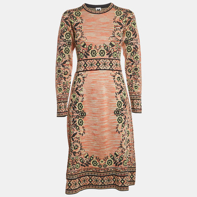 This long sleeve midi dress in beige and green floral knit brings easy elegance to everyday dressing. The slim fit and soft knit fabric flatter the figure without sacrificing comfort. Wear it with ankle boots and a trench for transitional appeal.