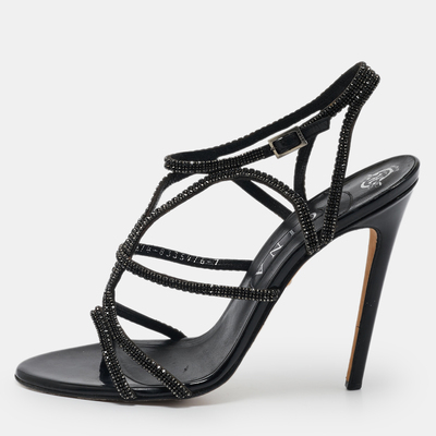 Gina Black Leather Crystal Embellished Ankle Strap Sandals Size 40 1135847 (чёрный, lpn29647522)