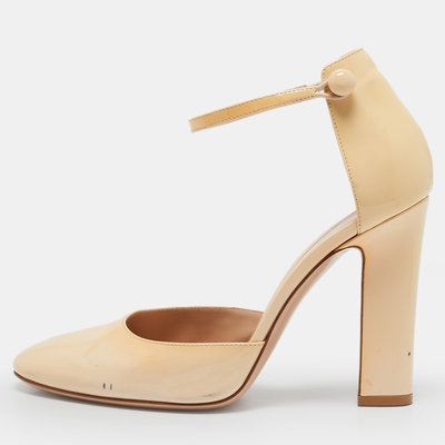 Gianvito Rossi Beige Patent Leather Ankle Strap Block Heel Pumps Size 38.5 1135977 (бежевый, lpn29647605)