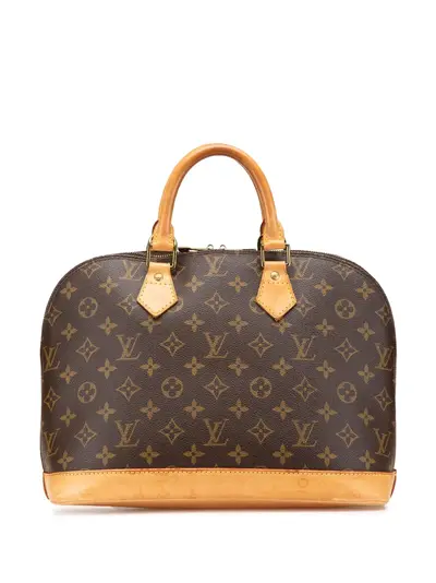 monogram canvas body with vachetta leather trim rolled vachetta leather handles top zip closure interior slip pocket brown Serial Number: VI1919 This item has no inclusions. Condition: GOOD. This previously owned and used item is in good condition with minimal signs of use. This may include fading of material or plating and scratches. Declared Damages: Exterior Bottom Feature(s) Moderate Water Mark. Corners Feature(s) Moderate Wear. Practical Attachment Feature(s) Moderate Rust/Tarnish. Please refer to the photos on this product page for a detailed view of the item, including any damages declared.