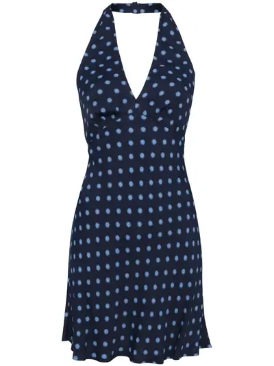 palo blue crepe texture halterneck empire line sleeveless tied waist open back flared skirt